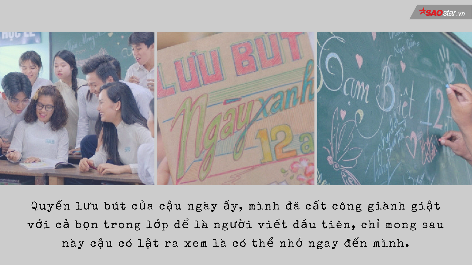 Bạn sẽ thấy chính bạn, chính bạn bè của bạn, như đang tươi cười, giận hờn vu vơ, hát hò ầm ĩ trước mắt, như đang thấy người thầy khó tính đang giảng mấy bài toán đau đầu trong không khí im phăng phắc của cả lớp, hay thấy cả cô lao công cần cù quét dọn mỗi khi tan trường.