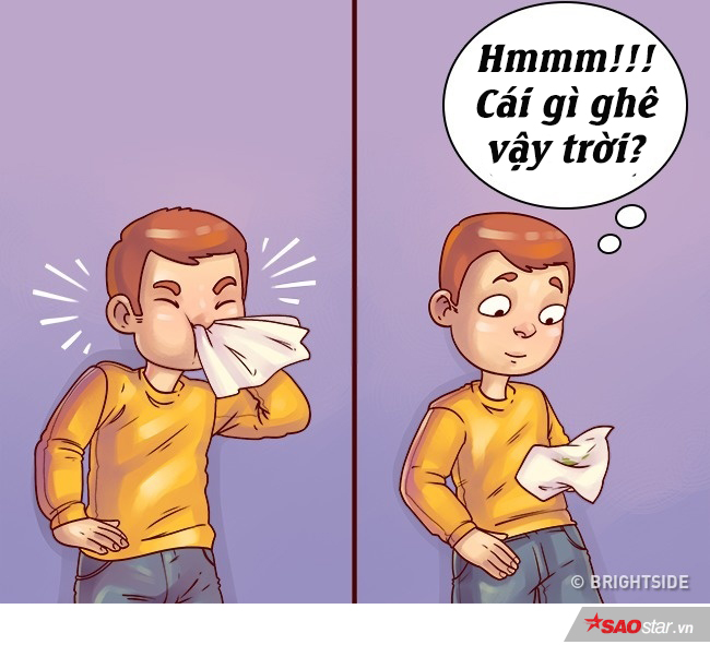 Đôi lúc thú vui sau khi xì mũi là được nhìn “kết quả” của mình rồi săm soi xem có gì