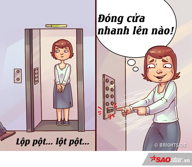 Có những lúc vào thang máy chỉ muốn ở một mình nên quyết định bấm nút đóng cửa liên tục để không ai có thể vào nữa.