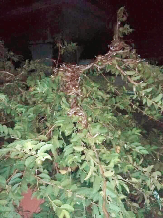 Bức ảnh cây ổi có 1 đàn rắn dài nối đuôi nhau khiến người xem thất kinh.