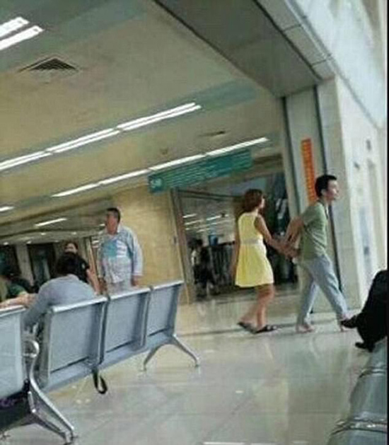 Bức ảnh được chụp bởi một người phụ nữ tại sảnh chờ của bệnh viện quận Sa Bình Bá, thành phố Trùng Khánh, Trung Quốc. Cô ấy trông thấy một đôi nam nữ đang ngồi chờ đến lượt. Cô gái thì khá khó chịu vì phải mang một chiếc giày cao gót và việc chờ khá lâu ở bệnh viện khiến cô mỏi mệt. Vì vậy, người yêu của cô đã quyết định đổi giày cho nhau.
