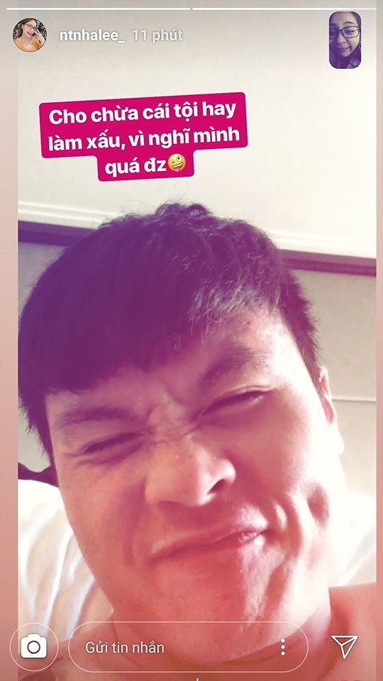 Nhật Lê đăng ảnh “dìm hàng” bạn trai trước khi Quang Hải bước vào trận đấu giữa tuyển Việt Nam gặp Nhật Bản.