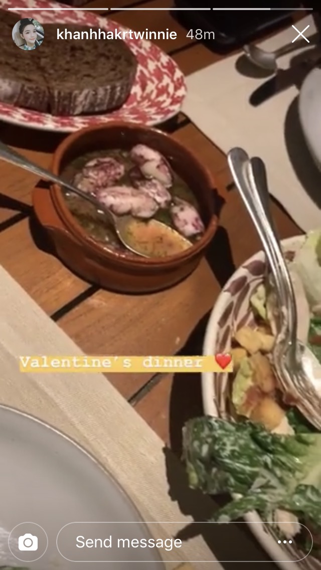 Sau đó cặp đôi đã có một bữa tối lãng mạn bên nhau. Chẳng phải nói cả hai đều đang chìm đắm trong mối tình siêu lãng mạn và ngọt ngào.