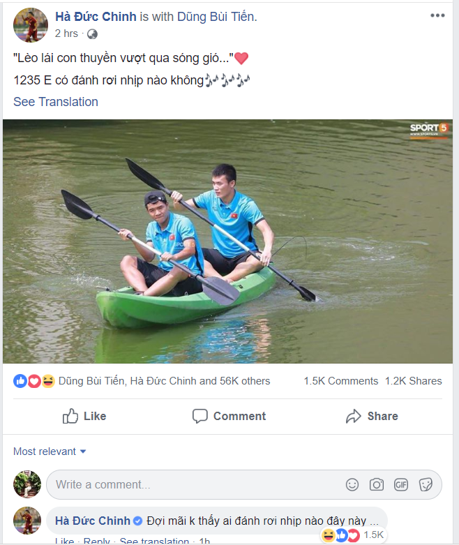 Vướng vào tin đồn đang “cặp kè” với hot girl Như Phương (sinh viên ĐH Ngoại thương TP.HCM), “thánh lầy” Hà Đức Chinh đã khéo léo lên mạng phủ nhận bằng một status cùng bức ảnh hài hước chụp cảnh chèo thuyền với thủ môn Bùi Tiến Dũng. Hành động này của anh không chỉ khiến fan nhận được một tràng cười xả stress mà còn đập tan tin đồn ồn ào trên mạng xã hội.