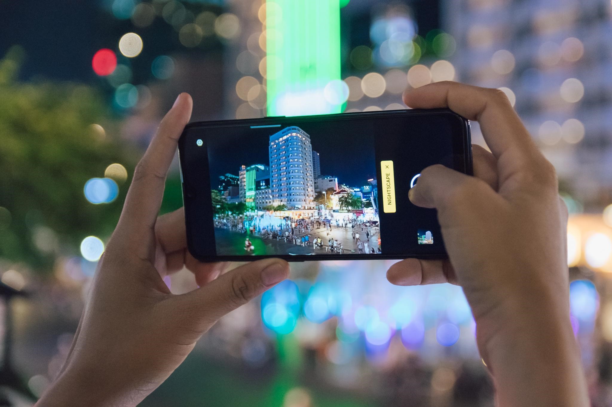 Đặc biệt sau buổi offline về nàng biết xài thêm chế độ Nightscape để chụp ảnh đêm đẹp hơn.