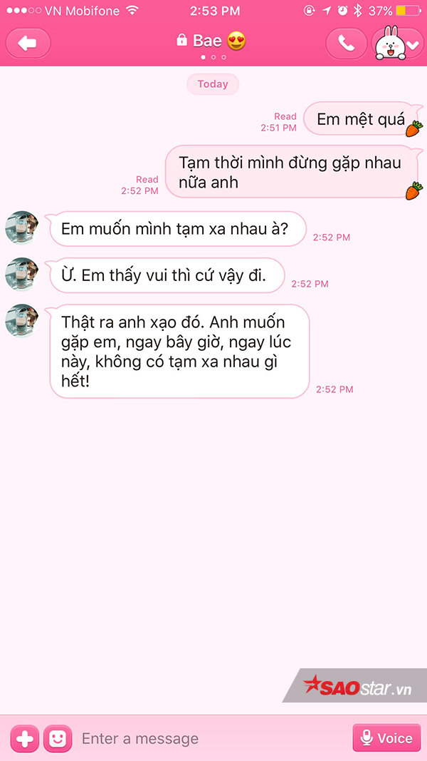 Anh… đạo đức giả chút thôi, chứ anh không muốn em đi đâu hết!