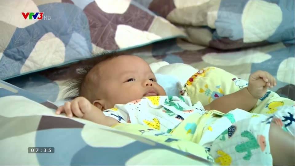 Một cảnh phim khác có sự xuất hiện của Củ Gừng đang nằm gọn trong vòng tay của ông bà nội.