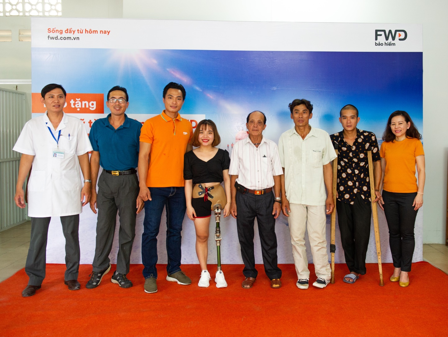 Cùng ngày, với sự hỗ trợ của Quỹ tặng chân giả của FWD, chị L.T.T. Viên (Gia Lai), anh T.B. Ngọc (Lâm Đồng), anh P.C. Cường (Đồng Nai) và anh L.T. Dũng (Đồng Nai) là những người đầu tiên được thăm khám và lắp chân giả miễn phí tại Trung tâm chỉnh hình và phục hồi chức năng TP.HCM.