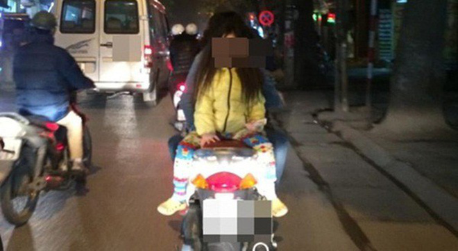 Theo hình ảnh được đăng tải trên mạng xã hội, 2 mẹ con không đội mũ bảo hiểm. Người mẹ một tay lái xe, một tay giữ người con đang ngồi ngược ghế ôm mẹ và ti sữa. Chủ nhân bài viết chia sẻ khoảnh khắc trên được chụp vào lúc 19h30 ngày 11/11 trên cung đường Tây Sơn hướng đi về Ngã Tư Sở (Hà Nội).