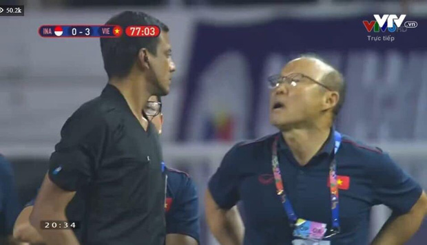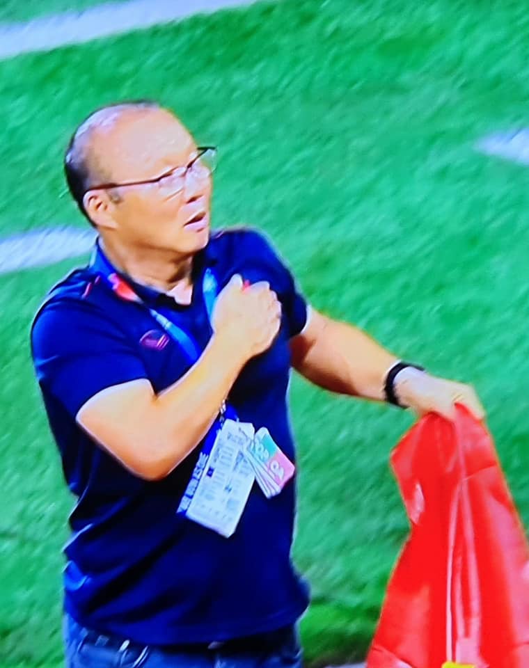 Gần cuối trận đấu, HLV Park bị nhận thẻ đỏ. Lập tức, vị HLV này đã có những phản ứng mạnh mẽ với trọng tài.