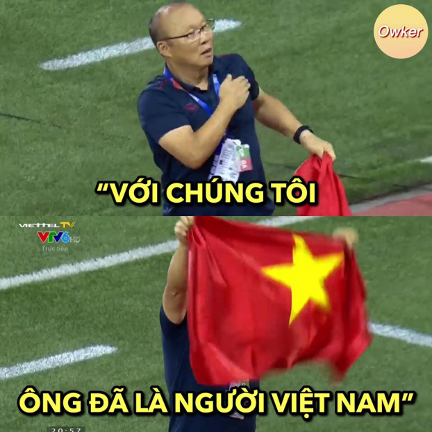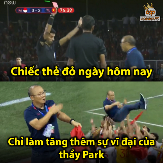 Sau khi trận đấu kết thúc, trong không khí ăn mừng chiến thắng, HLV Park Hang-seo trở thành “tâm điểm” chế ảnh của cộng đồng mạng.