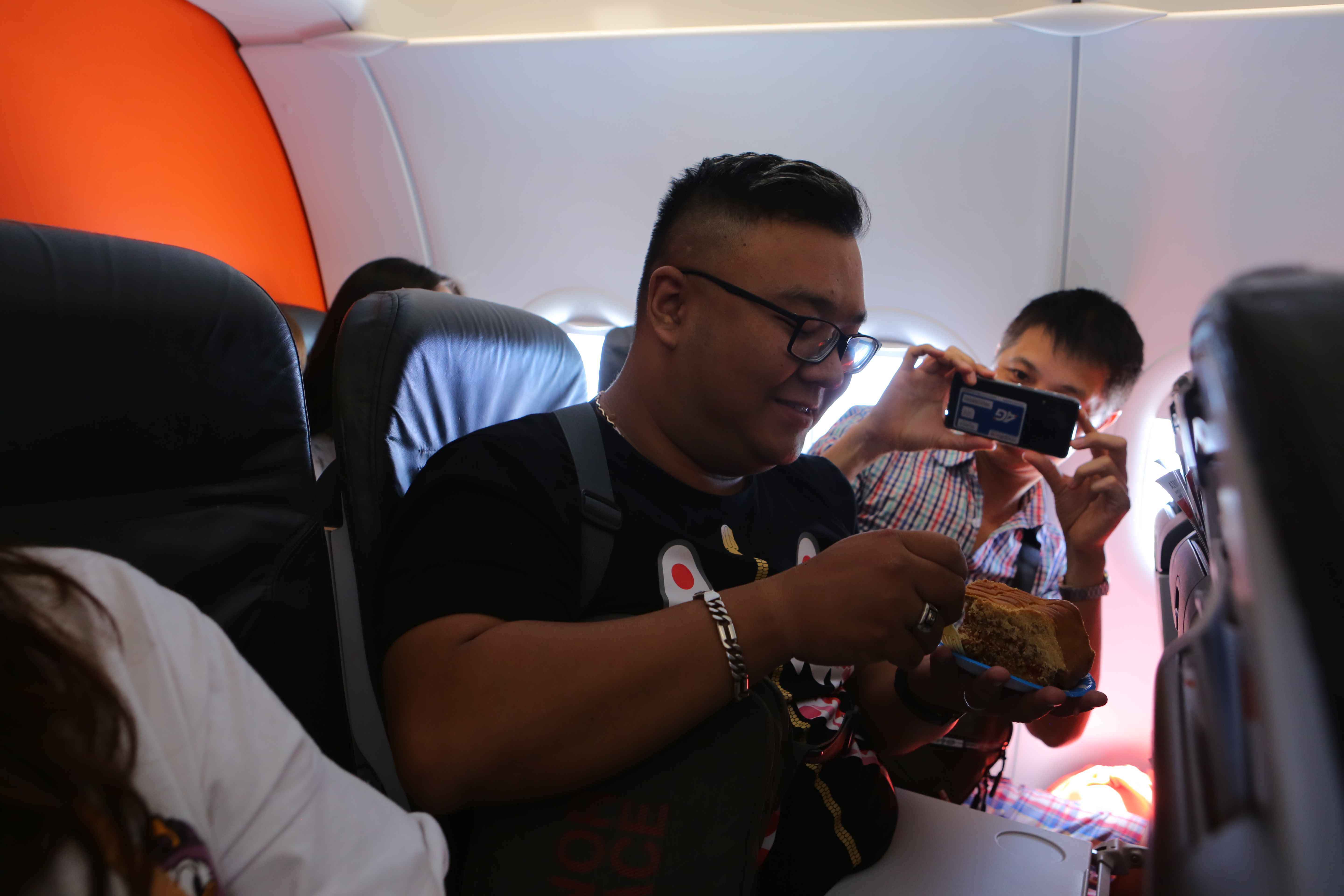 Trăm nghe không bằng một thấy, các hành khách của Jetstar “mắt chữ A, mồm chữ O” thích thú khi được thưởng thức hương vị của chiếc bánh siêu to khổng lồ và chụp lại những bức ảnh kỷ niệm với bà Tân Vlog.
