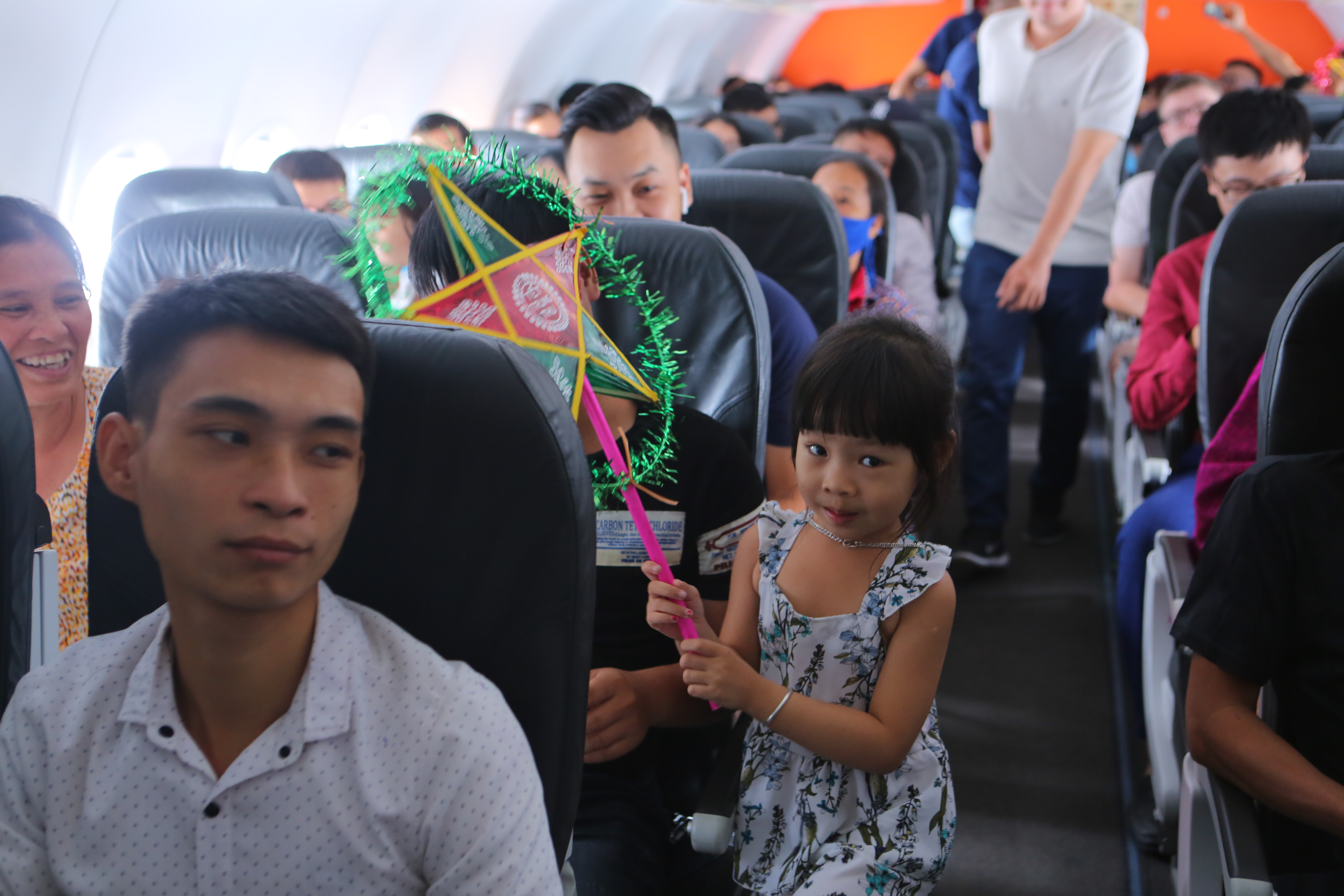 Chuyến bay BL755 cất cánh từ Hà Nội đến TP.HCM kéo dài 2 tiếng nhanh chóng trôi qua, máy bay dần hạ cánh nhưng các hành khách dường như vẫn chưa muốn xuống máy bay để tận hưởng không khí trung thu truyền thống và chụp lại những khoảnh khắc đáng nhớ.