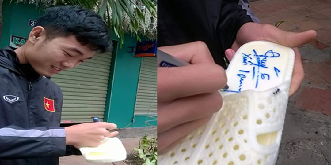 Nếu ra đường vô tình bắt gặp đội trưởng quốc dân Lương Xuân Trường, bạn muốn xin chữ ký làm kỉ niệm nhưng chẳng có giấy hay cuốn sổ nào trong tay thì phải làm sao? Một fan hâm mộ đã nghĩ ra cao kiến khiến “500 anh em” trên mạng phải nể phục, đó là cách yêu cầu thần tượng ký ngay lên chiếc dép tổ ong trắng tinh.
