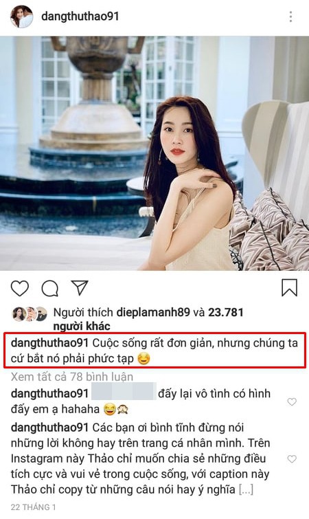 Đặng Thu Thảo nhận được khá nhiều bình luận “gay gắt” sau khi đăng tải dòng trạng thái triết lý về cuộc sống