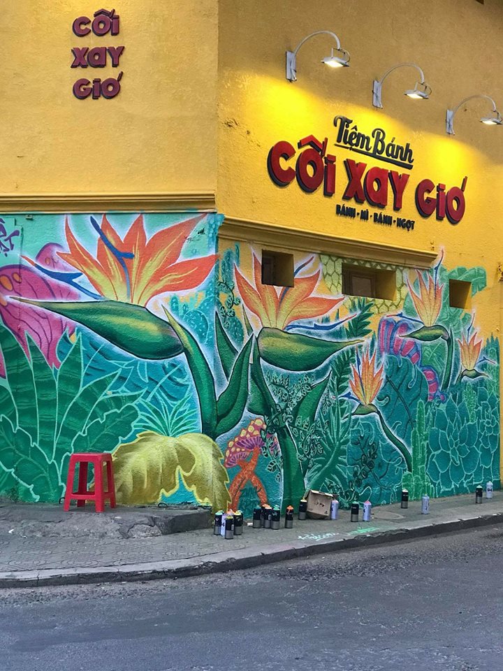 Trước đó, tối 26/2, nhiều bạn trẻ chia sẻ hình ảnh bức tường vàng của tiệm bánh Cối xay gió (Đà Lạt) bị vẽ bậy. Sau đó khoảng 1 tuần, bức tường này lại được “hồi sinh”.