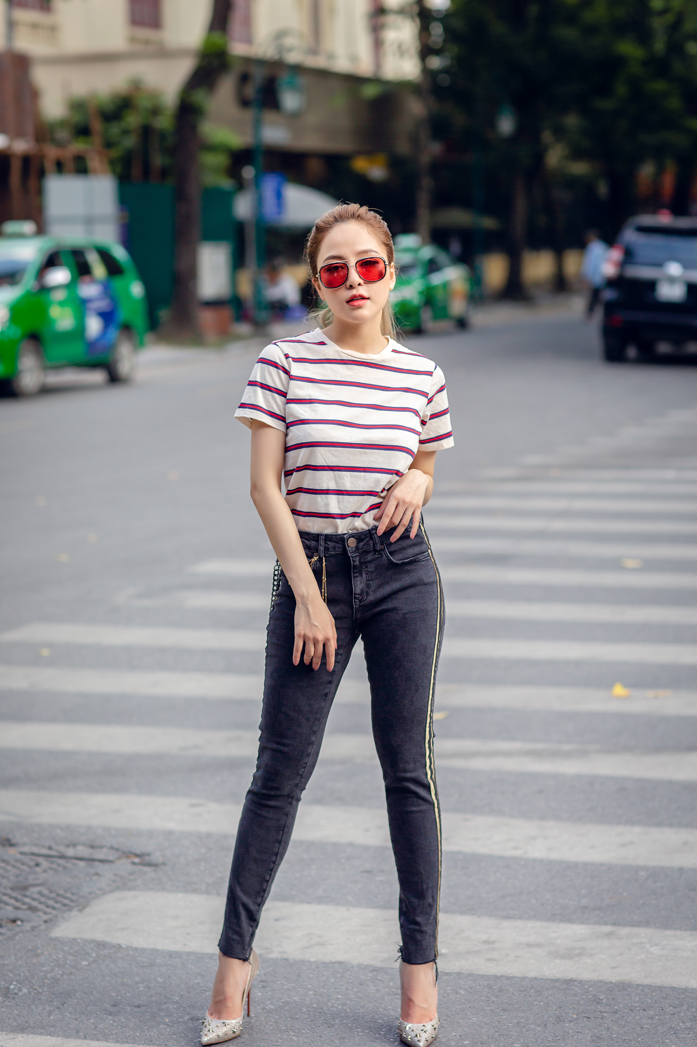 Trong chùm ảnh street style mới, Trâm Anh khiến nhiều người bất ngờ với style thời thượng nhờ cách mix đồ trẻ trung cùng những phụ kiện hàng hiệu.