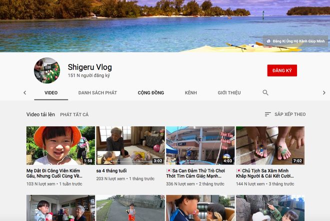 Kênh YouTube của bé Sa có tên là Shigeru Vlog.