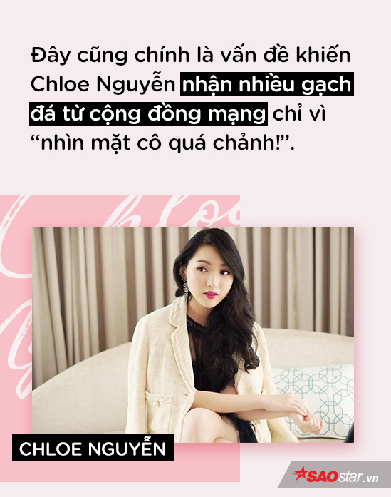 Nhiều người gọi Chloe là “công chúa từ trong trứng” nên phong thái và nét mặt của cô nàng có chút ngạo kiều tạo cảm giác lạnh lùng, có chút hơi xa cách. Dần dà, Chloe quen với những lời nói khiếm nhã mà những “anh hùng bàn phím” đã dành cho cô và quyết tâm trở thành một trong những beauty blogger hàng đầu trong nước.
