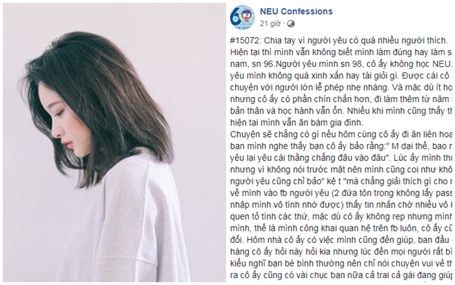 Câu chuyện chia tay người yêu vì có quá nhiều người thích đang là chủ đề gây xôn xao trên NEU Confession.