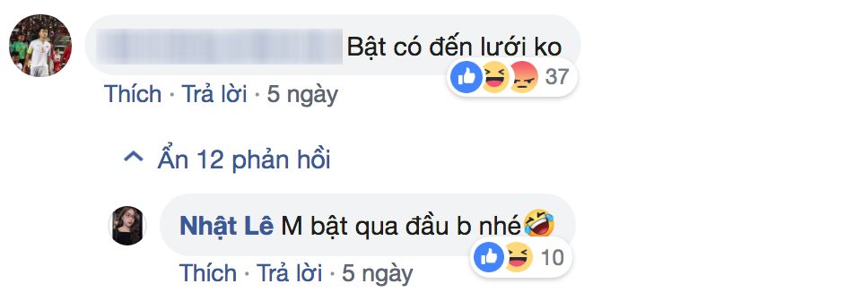 Gần đây, cô nàng đã đăng tải lên trang facebook cá nhân tấm hình chụp khi đang tham gia giải bóng chuyền của nhà trường. Ngoài những phản hồi tích cực, không ít antifan dùng những câu nói không hay để mỉa mai cô nàng. Tuy nhiên, không im lặng để người khác có quyền lấn át mình. Nhật Lê đã phản pháo cực sâu cay nhưng cũng không kém phần hài hước ngay sau đó.