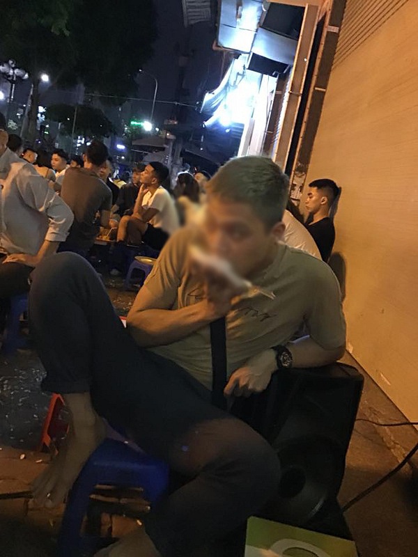 Bữa tiệc diễn bằng những chiếc ghế nhựa nhỏ, bánh kem được đặt hẳn xuống nền như cách ăn mừng “bệt” của các bạn trẻ. Trong đó muỗng, đĩa được chuẩn bị đầy đủ, chu đáo. Đúng là “nỗi buồn hôm nay không làm nên bạn của ngày mai”, anh chàng còn kéo hẳn một dàn loa hát karaoke ngoài trời.