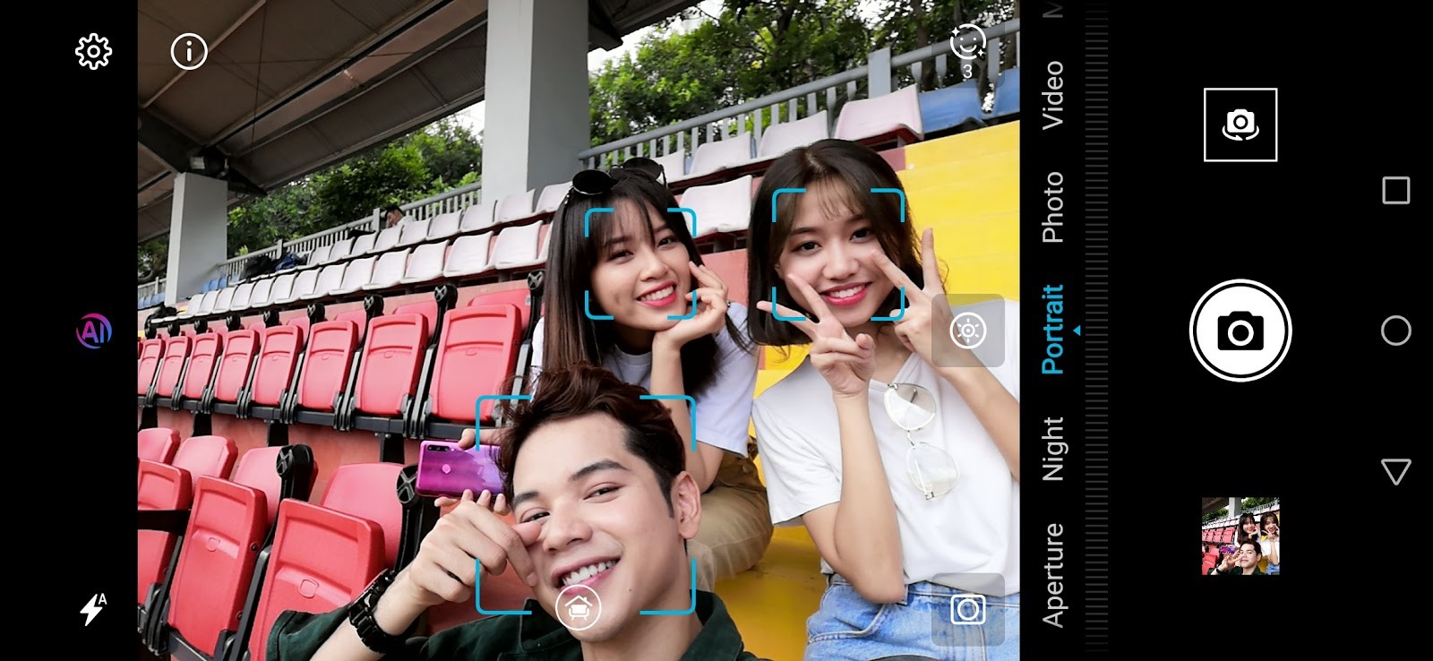 Chuẩn bị bối cảnh và tạo thế sẵn sàng rồi thì đưa đưa thoại lên và “triển” thôi nào. Để khỏi mất công với tay bấm nút chụp, tính năng nhận diện cử chỉ giơ 5 ngón tay hay nhận diện nụ cười trên Honor 20 Lite sẽ giúp bạn dễ dàng bắt được khoảnh khắc xuất thần cả nhóm đấy. Có thêm AI làm đẹp từng khuôn mặt thành viên nên chẳng phải lo khi ai cũng đẹp lung linh.