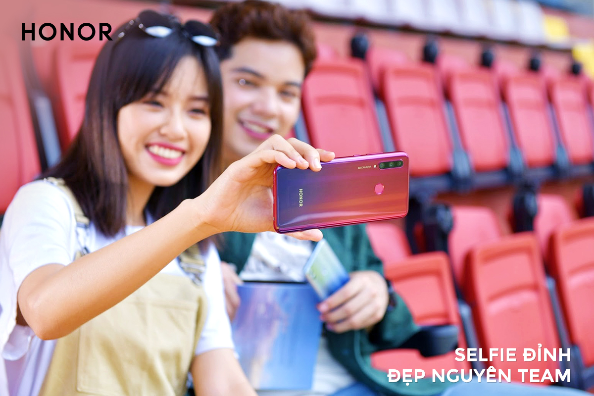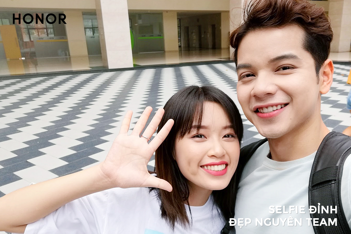 Mặt to mặt nhỏ khi chụp selfie couple không là vấn đề đối với Honor 20 Lite.