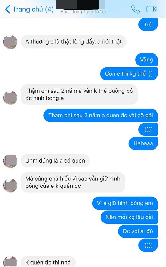 “1 là chúng nó không còn ai dự phòng nên mới nhớ đến em, em lại còn độc thân nên chúng nó hi vọng lắm chứ. 2 là mấy thằng đó âm mưu đủ thứ khác, hiếm thằng nào tử tế mà 2 năm yêu cả rổ tình mới rồi mới năn nỉ xin quay lại với mình”.