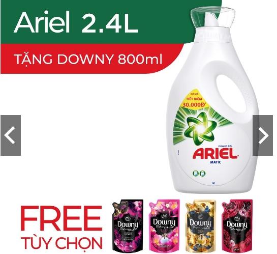 Ariel Matic chai 2.4L đậm đặc tặng xả Downy nước hoa 800ml. Cơ hội giảm giá chỉ có trong chuỗi sự kiện 9.9. Đã tặng quà giá lại vô cùng hấp dẫn chỉ còn 150.000 đồng (giá gốc 222.000 đồng).