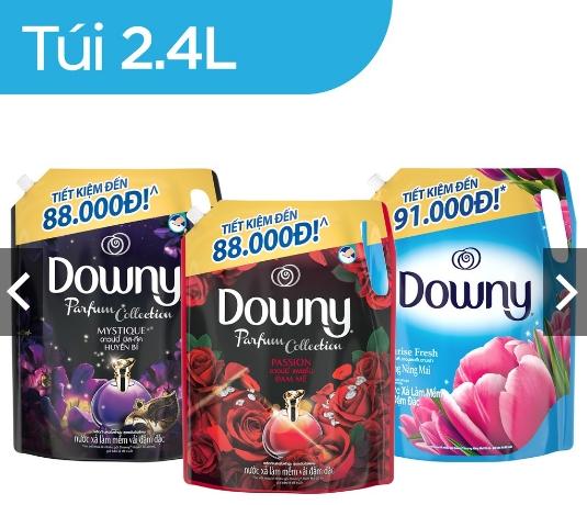 Downy xả vải hương nước hoa để bộ trang phục cả ngày dài vẫn được ướp trong hương thơm. Giá gốc sản phẩm 146.000 đồng giảm còn 109.000 đồng.