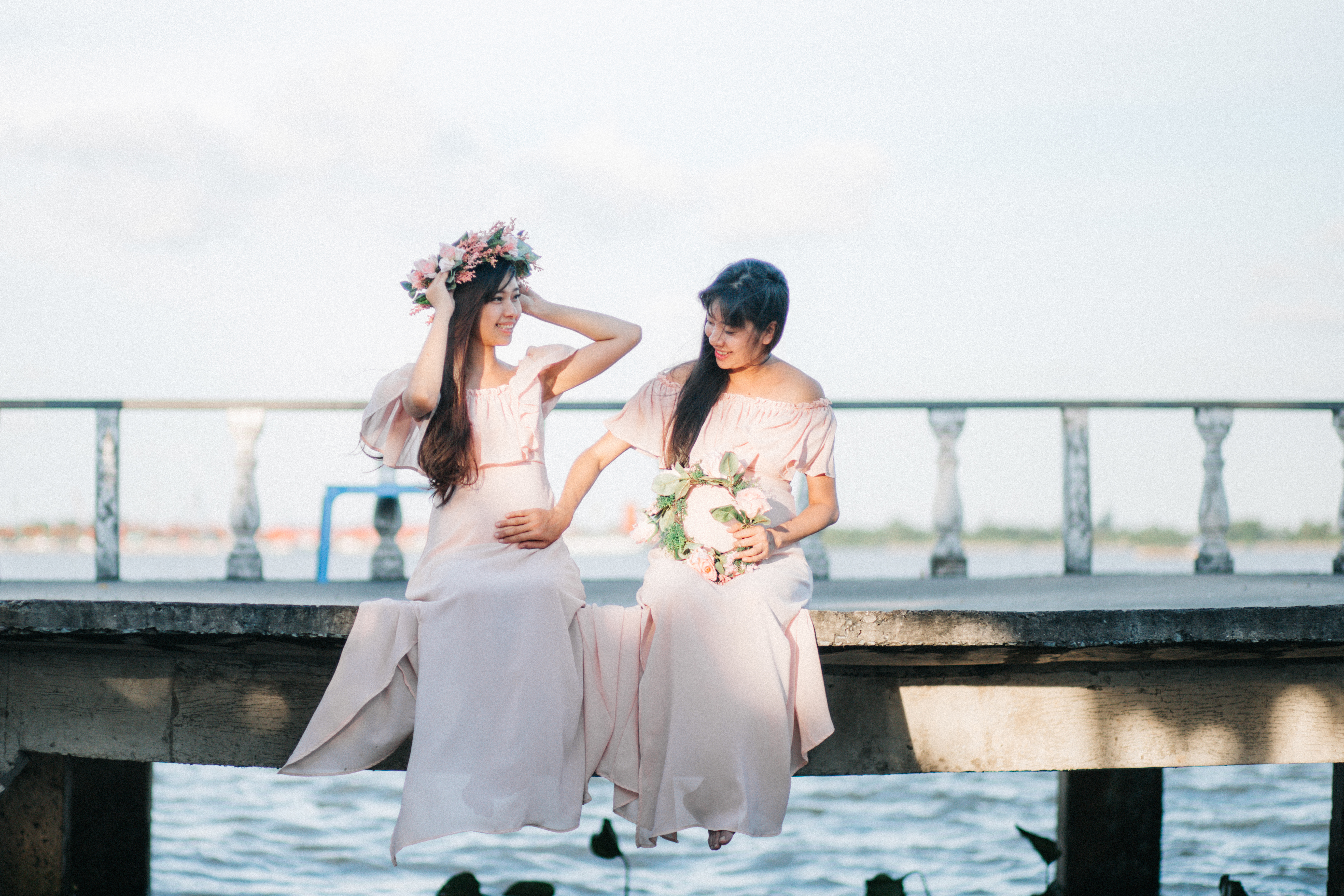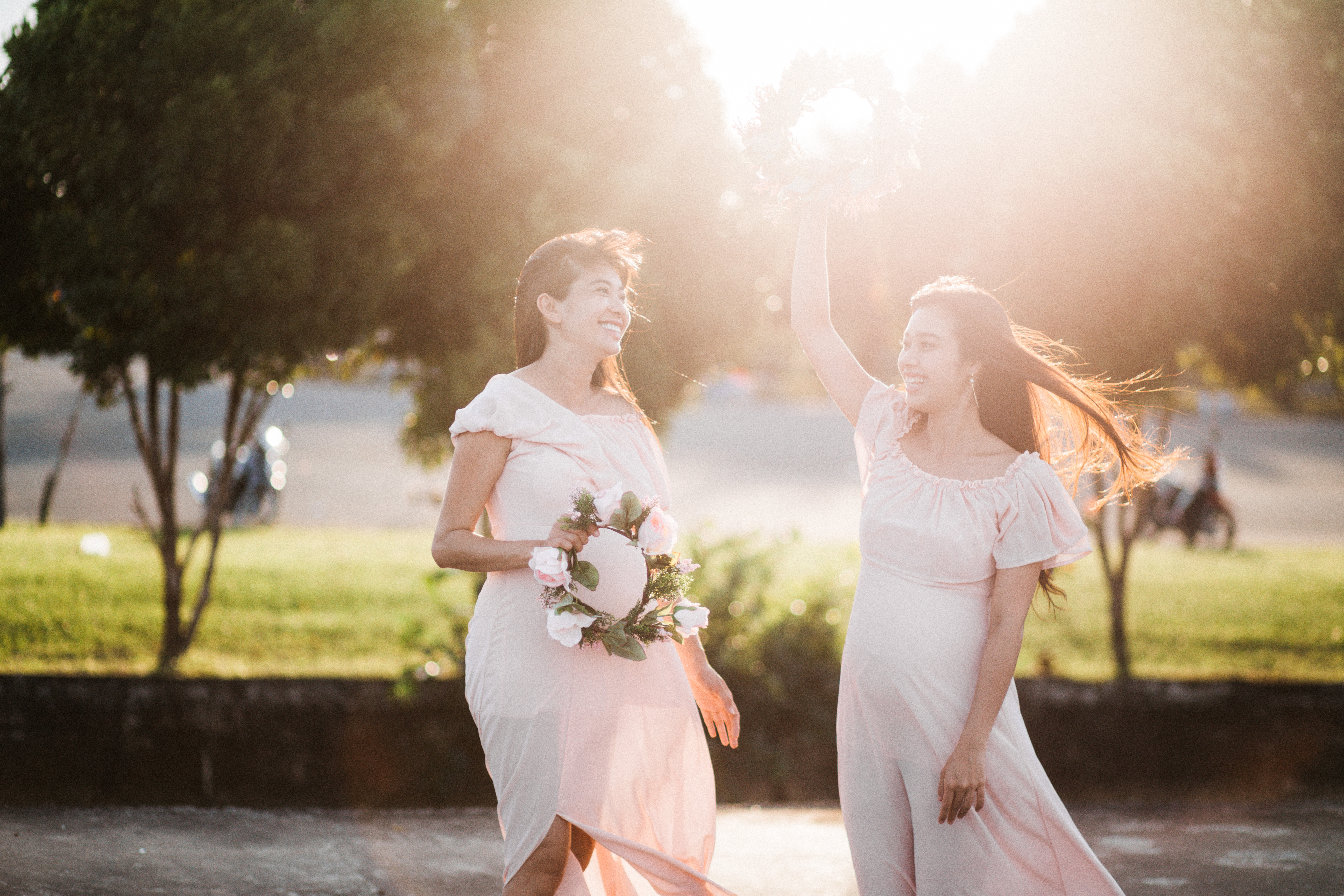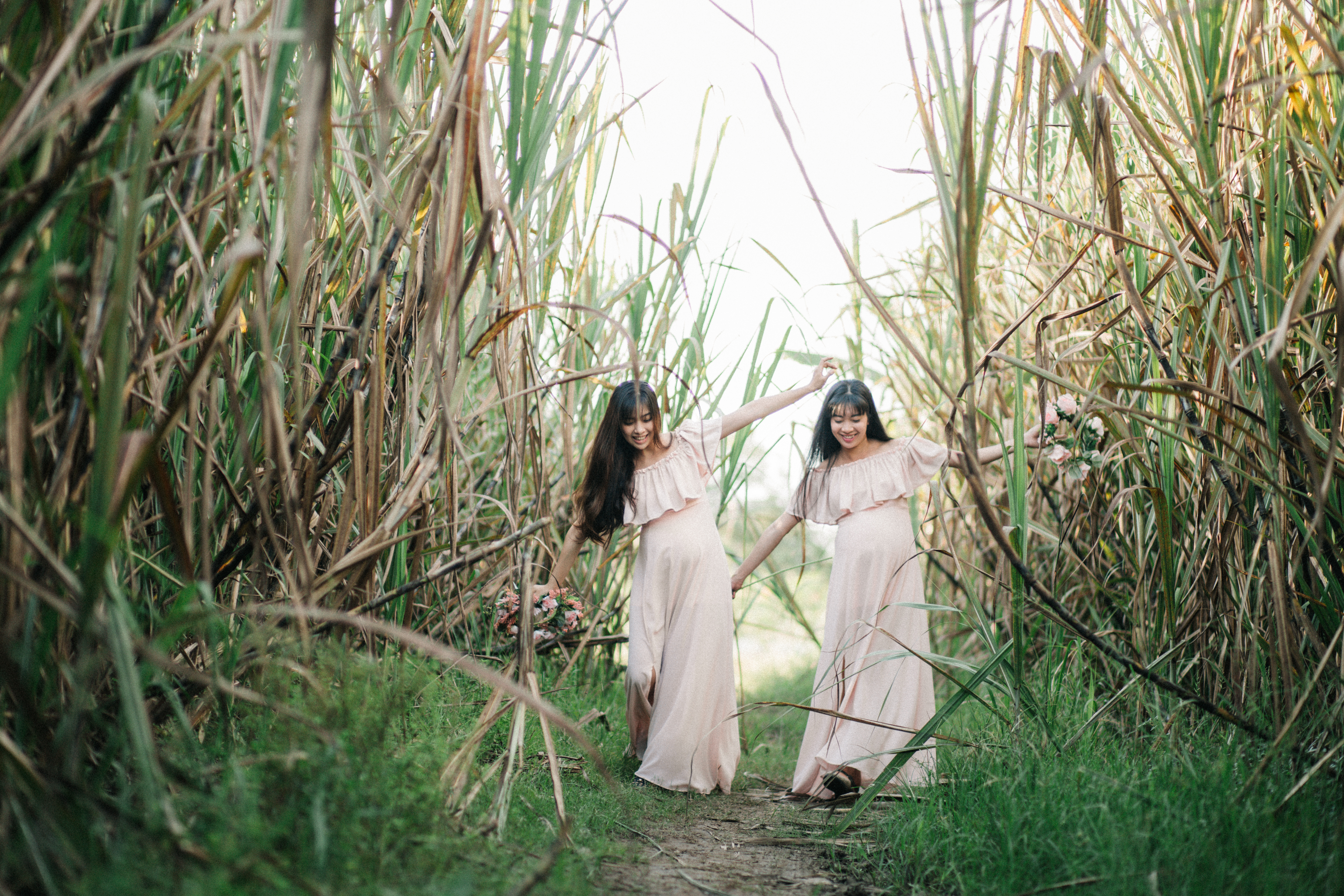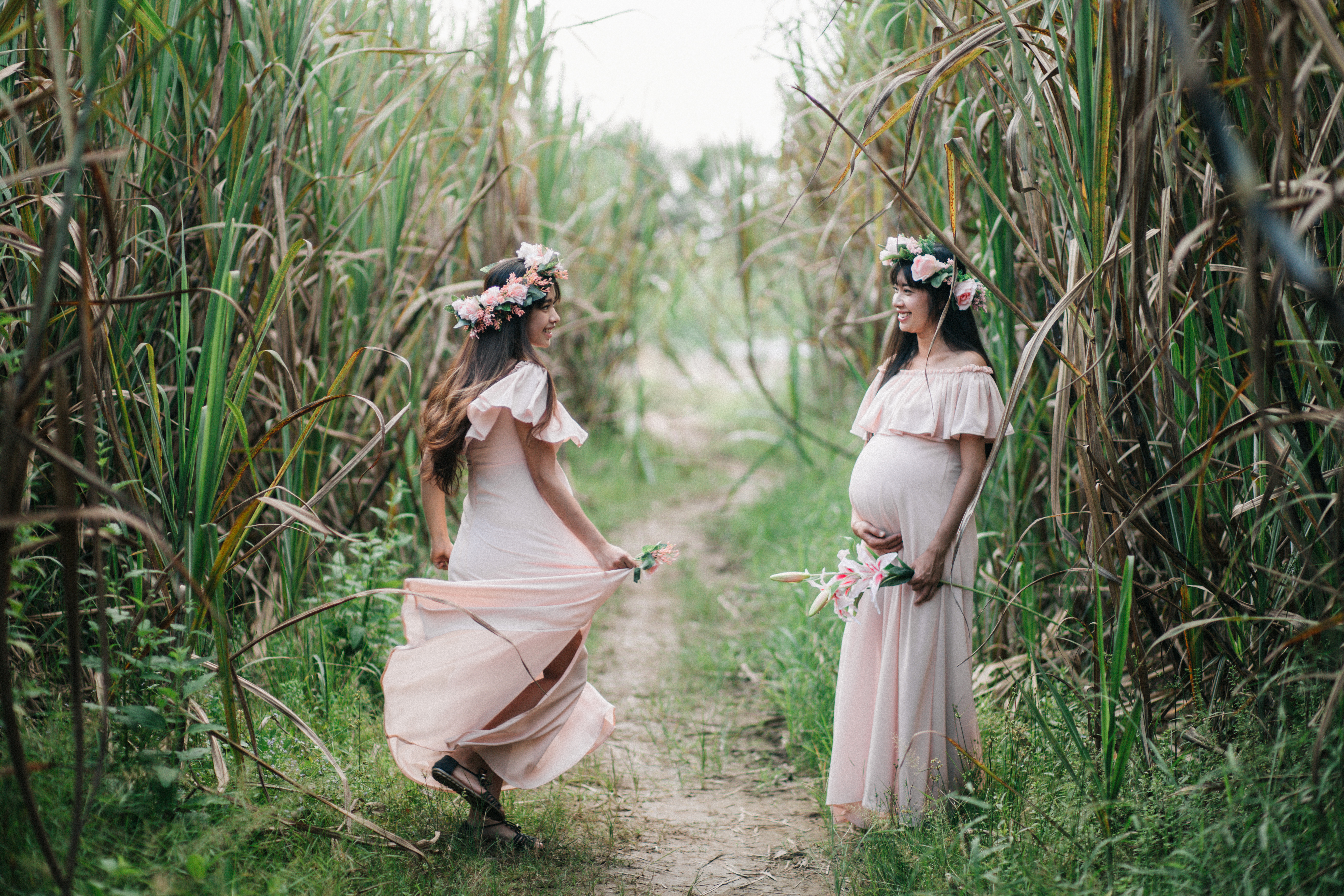 Bộ ảnh 2 chị em cùng mang bầu được chụp lại trong một vườn mía ở Cần Thơ.