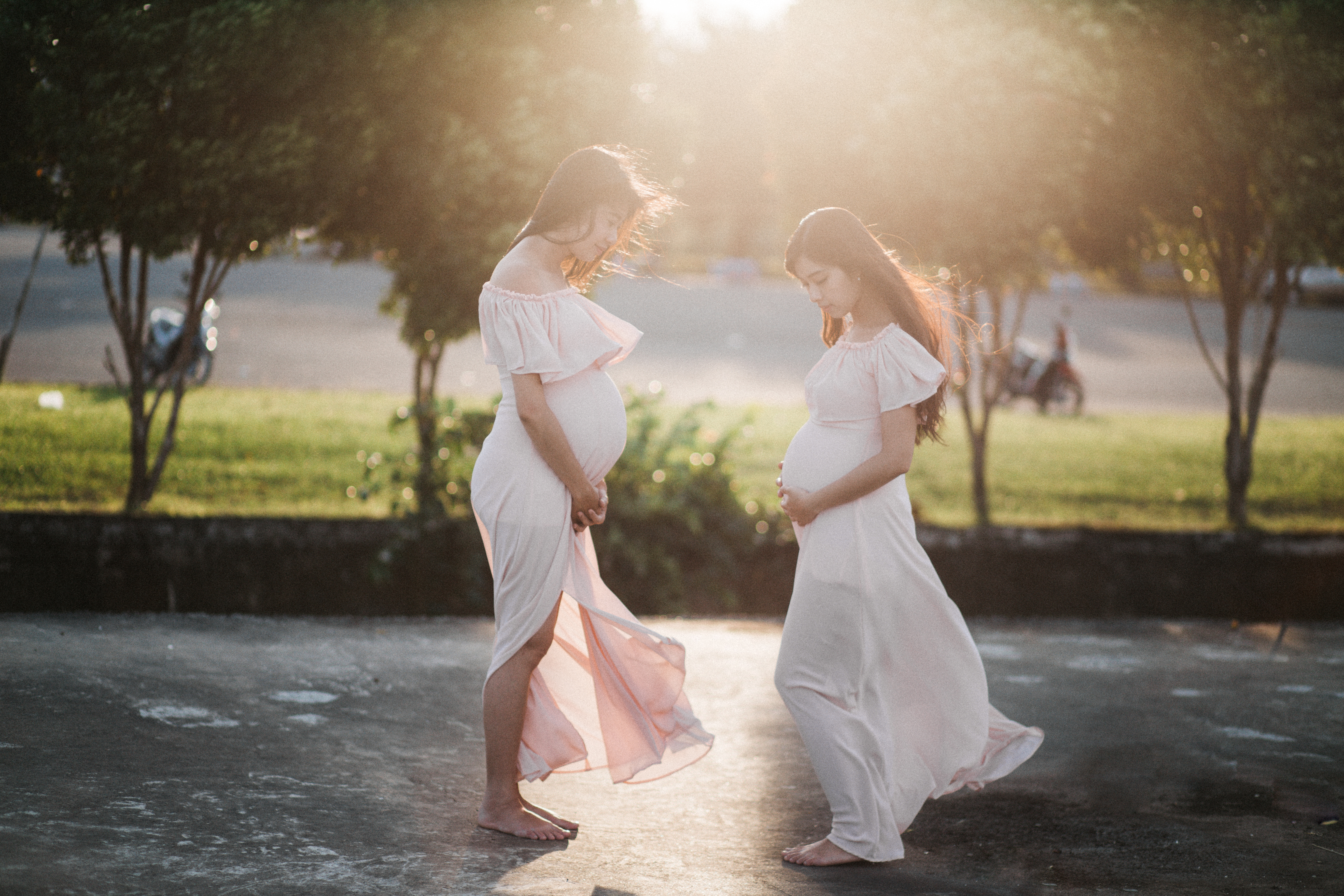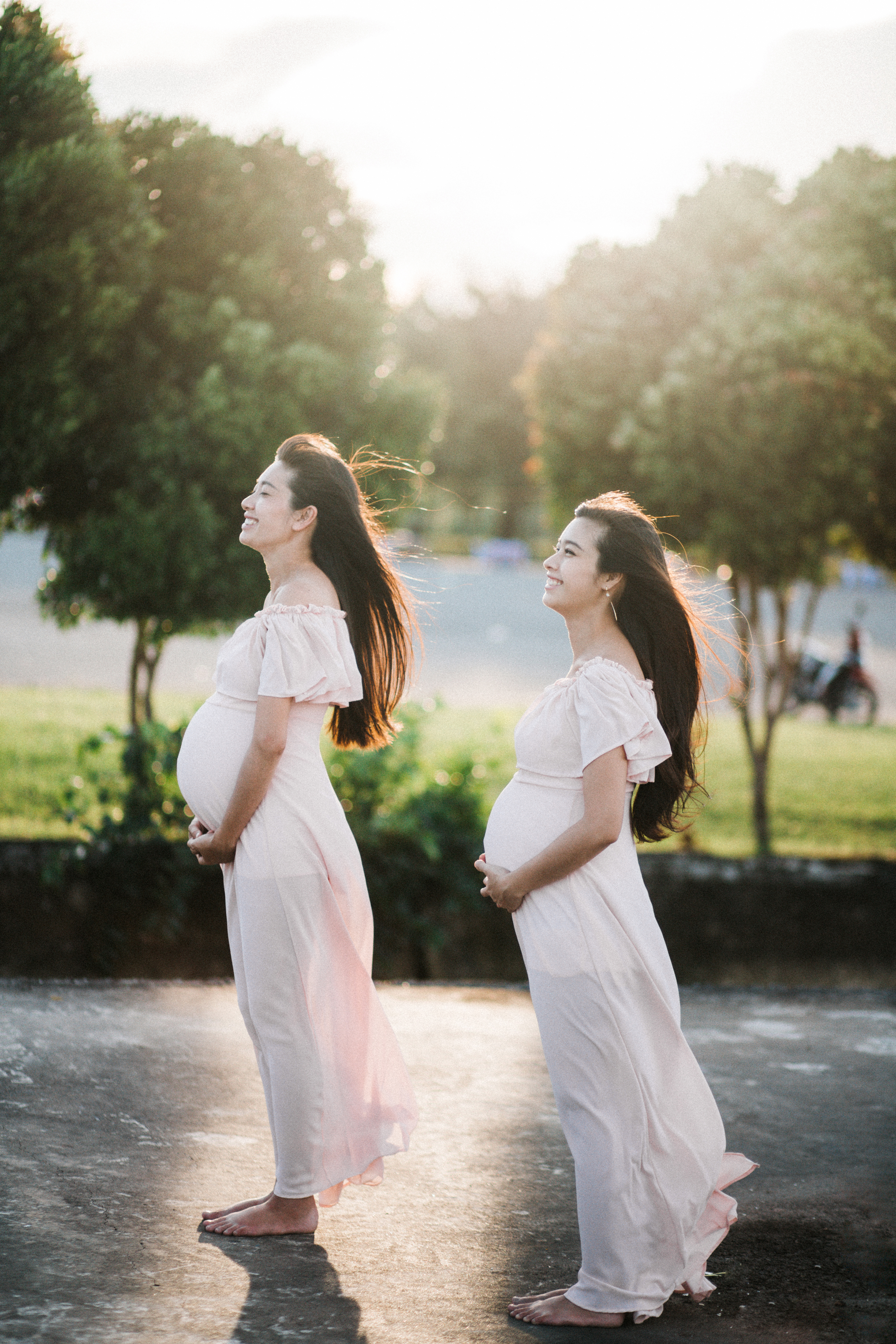 Do sắp đến ngày sinh nên việc di chuyển của 2 mẹ bầu khá khó khăn, việc tạo hình cũng chẳng dễ dàng nên ekip chụp ảnh đã phải mất nhiều công sức và thời gian hơn so với những bộ ảnh bình thường.
