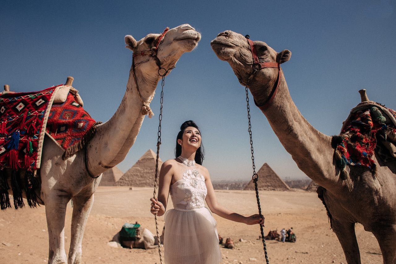 Về lí do quyết định thực hiện bộ ảnh cưới tại Ai Cập, người đẹp vui vẻ chia sẻ: "Vì đi công tác chung với đoàn nên chúng tôi chỉ có khoảng 1 giờ đồng hồ để chụp ảnh trên sa mạc bên hai chú lạc đà và trên background là di tích kim tự tháp nổi tiếng của Ai Cập". Ngoài ra đây chính là đất nước mà cả hai đã gặp gỡ lần đầu tiên và nảy sinh cảm tình với đối phương. Tại thời điểm đó, nàng hậu đã có thiện cảm với Phú Đạt vì anh là người có kiến thức phong phú, cách nói chuyện dí dỏm nên cô đã chủ động chinh phục.