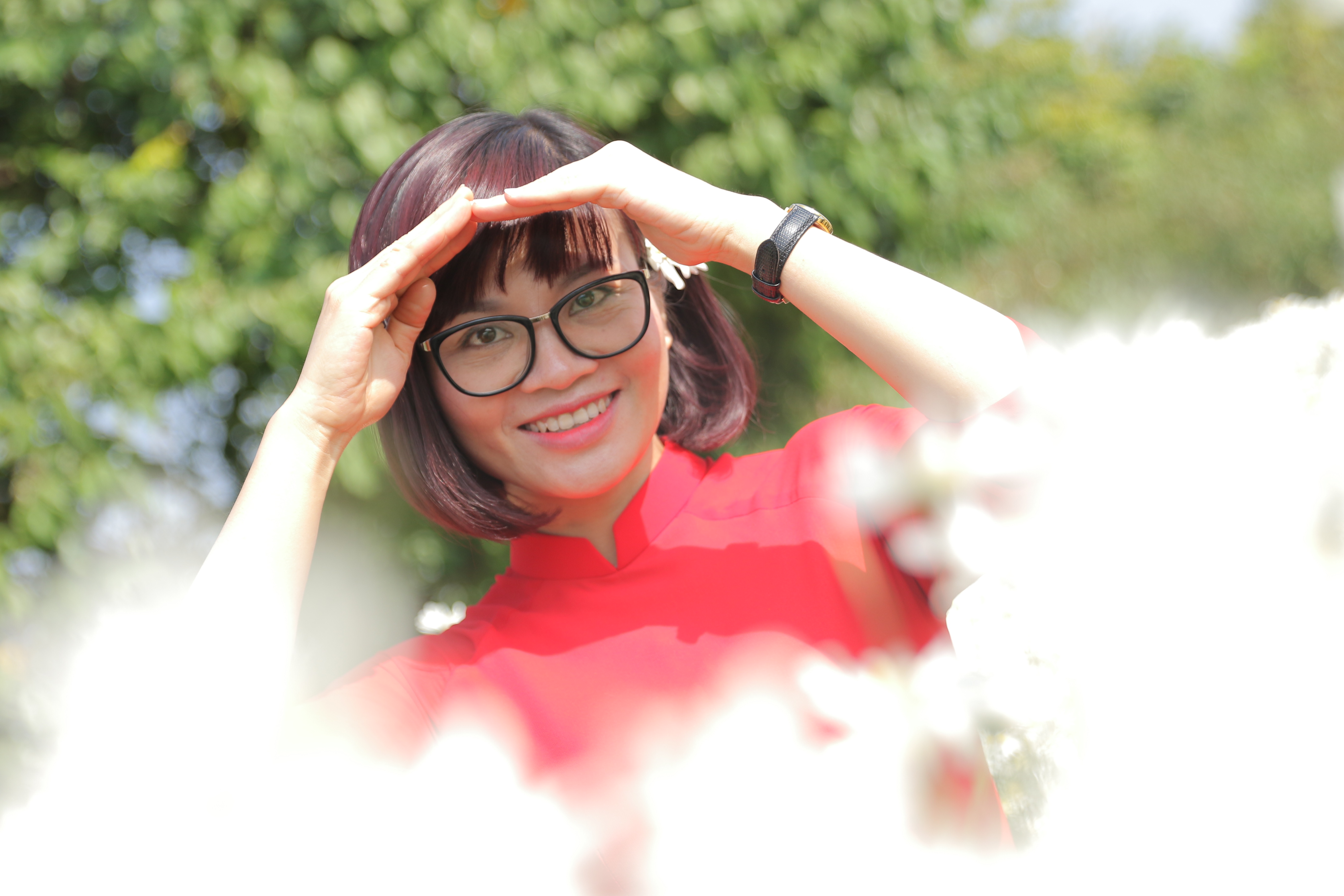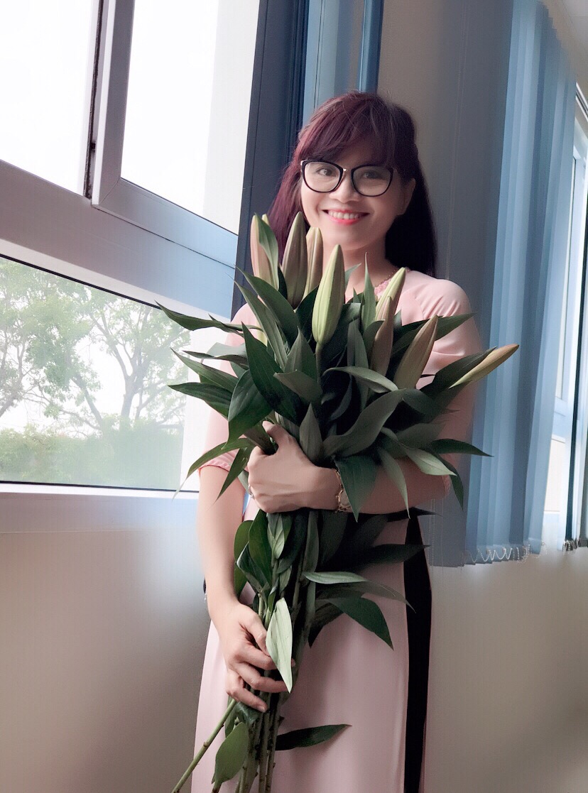Hình ảnh cô Tân rạng ngời với cúc họa mi