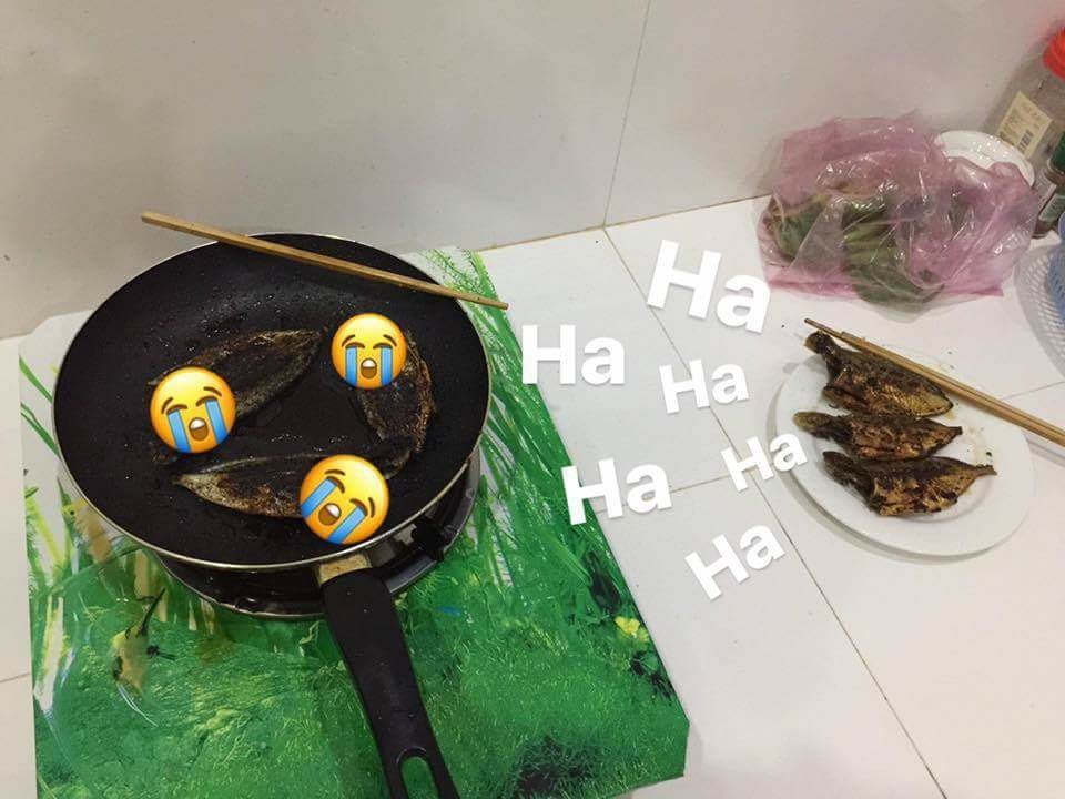 Đó chính là bộ ảnh mang tên ”Câu chuyện gia đình cá chiên” được đăng bởi nickname Trần Thanh Hải, với nhân vât chính là 6 con cá đã được làm sạch và chuẩn bị lên chảo. 30 tấm ảnh chỉ quẩn quanh chuyện các con cá cười haha (khớp với hình dáng) để rồi sau đó phải lên chảo, rồi trở thành đồ ăn của con người. Câu chuyện chỉ đơn giản là ghép chữ vào ảnh, nhưng có lẽ chính vì sự ”thiếu muối” đó đã khiến bộ ảnh hút được hàng ngàn lượt thích của cư dân mạng.