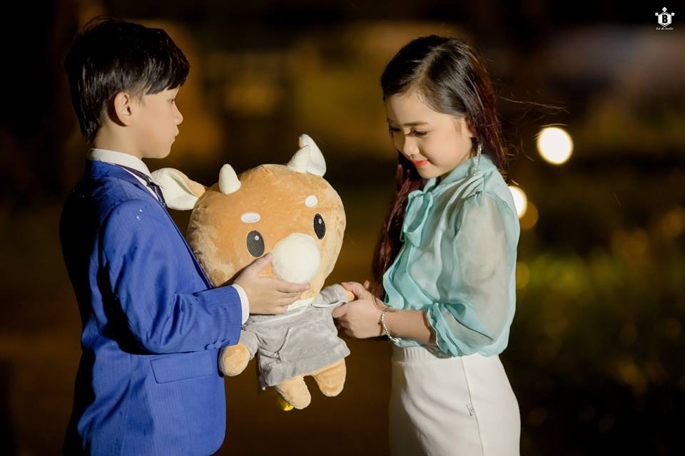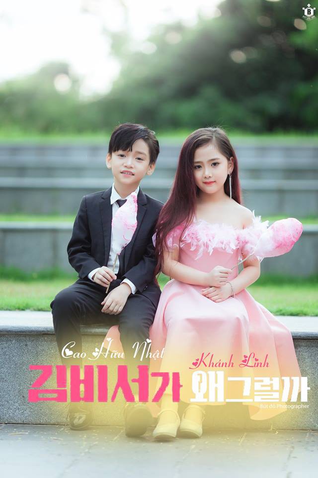 Còn nàng “thư ký Kim” nhí là Nguyễn Lê Khánh Linh. Trước đó, Hữu Nhật và Khánh Linh từng gây sốt trong bộ ảnh “Sống xa anh chẳng dễ dàng”.