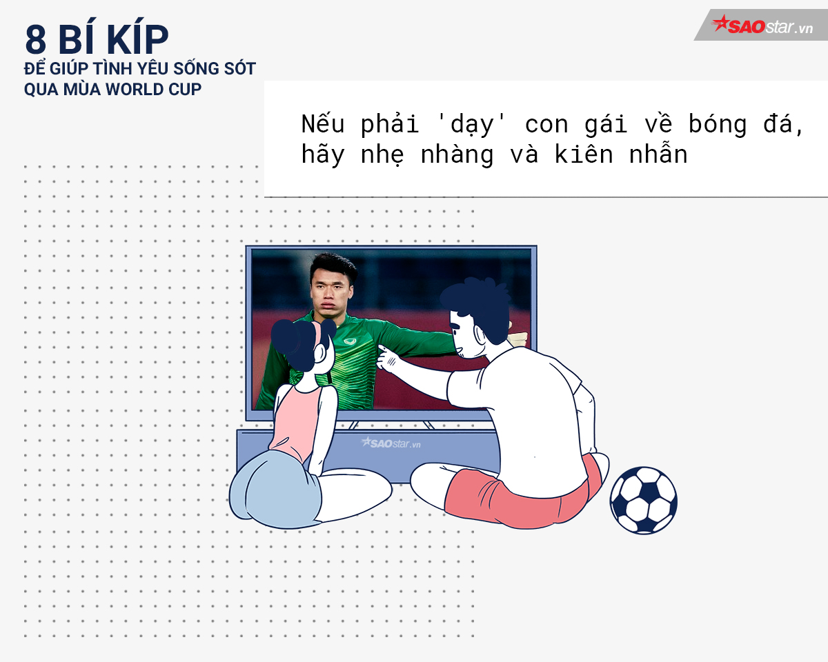 Con gái là ”chúa mù tịt” bóng đá và nếu nàng đặt câu hỏi về bóng đá, hãy kiên nhẫn với nàng, thay vì gắt gỏng ”Anh nói thì em cũng chả hiểu đâu, đừng quan tâm làm gì”