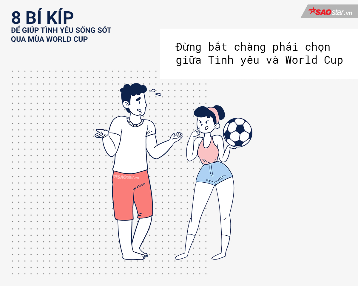 Thật vậy. Nếu không cẩn thận và khéo léo, tình yêu của bạn có thể gặp nguy chỉ vì một trái bóng tròn đấy. Dưới đây là 8 bí kíp để giúp tình yêu sống sót qua mùa World Cup, con gái và con trai hãy cùng lưu ý nhé.