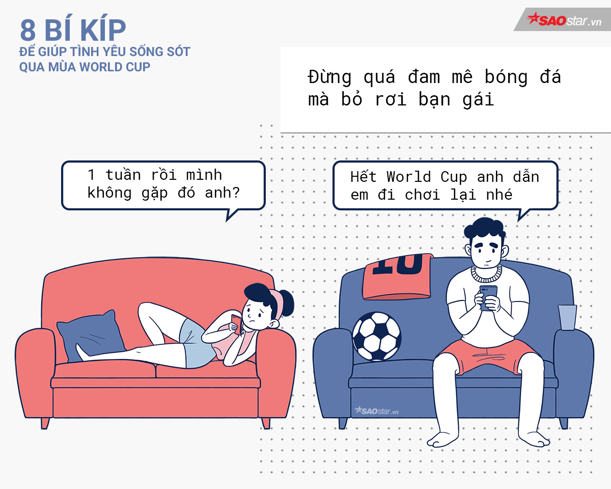 Dù có đam mê đến đâu, thì các chàng trai - hãy cố gắng quan tâm đến bạn gái của mình nhé. Đừng bỏ bê họ vì lý do World Cup.