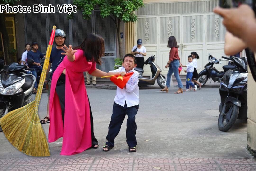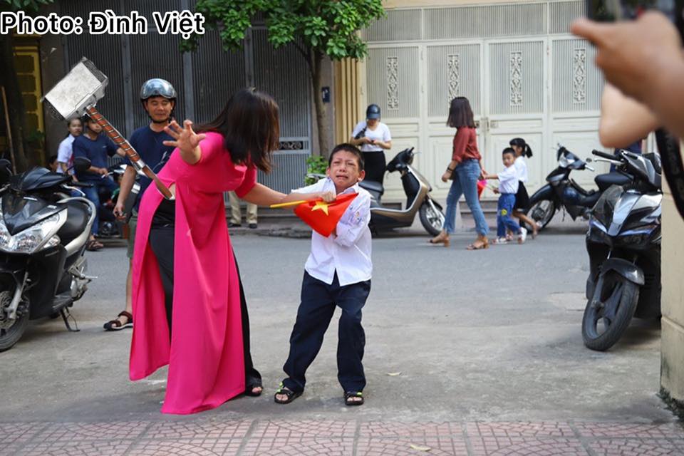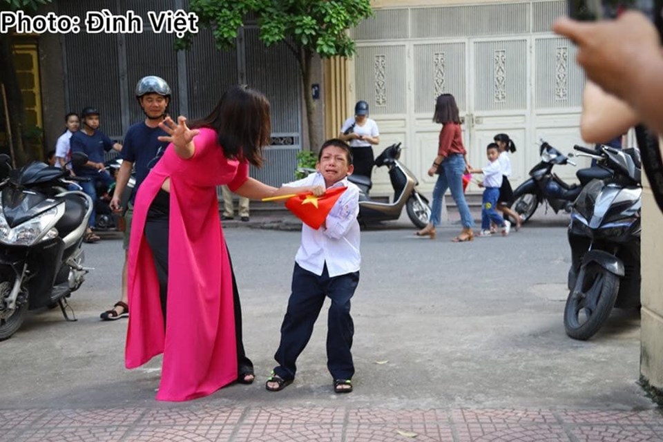Được chụp bởi một cư dân mạng có tên Đình Việt, bức ảnh đã nhanh chóng gây bão MXH và nhận về nhiều bình luận khác nhau. Trong ảnh, một cậu bé học sinh đang khóc lóc, dùng mọi nỗ lực để tránh việc phải vào trường. Cô giáo thì dường như đang dùng hết sức mạnh để giữ học trò của mình. Màn ”kéo co” của hai cô trò đã khiến người ta vừa khóc, vừa cười.