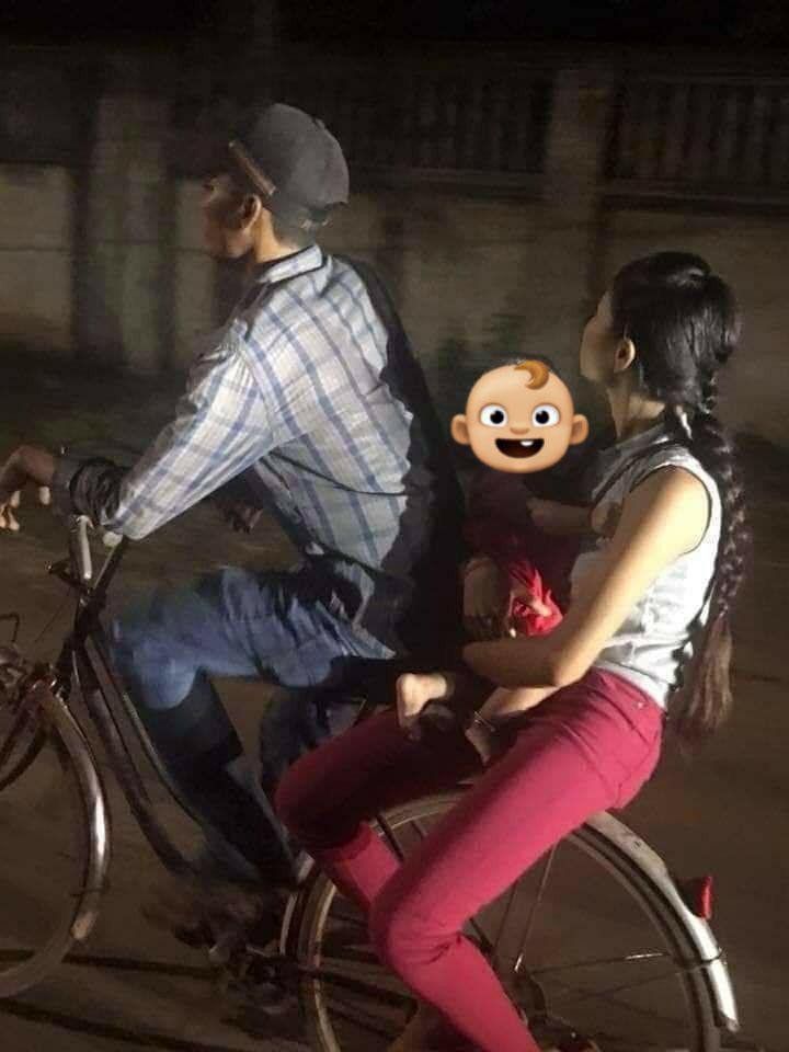 Bức ảnh ghi lại cảnh một cặp vợ chồng trẻ cùng đứa con nhỏ đang đi trên chiếc xe đạp cũ. Thoạt nhìn thì bình thường thôi, nhưng khôn hiểu sao, càng nhìn lâu, bức ảnh này càng khiến người ta phải suy nghĩ. Liệu gia đình họ có đang hạnh phúc? Hạnh phúc có phải là ăn ngon, mặc đẹp, tiền tiêu không hết… hay chỉ đơn giản là khoảnh khắc bên nhau như thế này mà thôi?