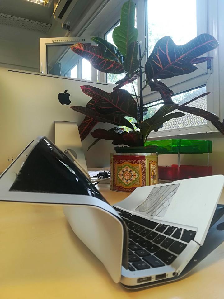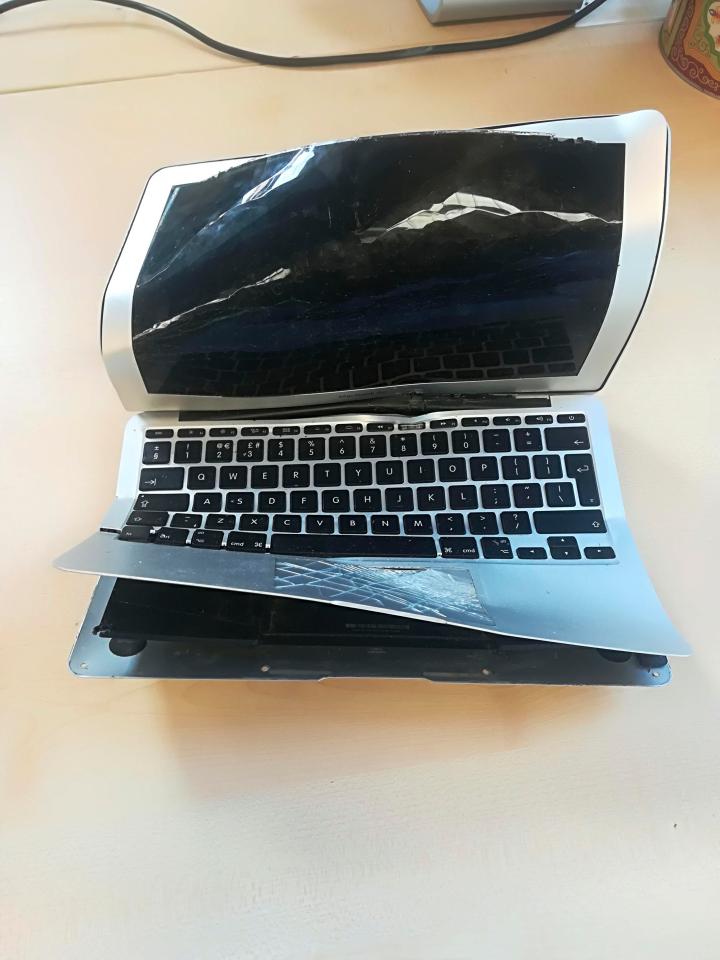 “Ban đầu tôi nghe thấy tiếng chiếc túi bị xé ra, tôi nhìn xuống qua vết rách và nhận ra sự việc còn đi xa hơn thế. Tôi hiểu rằng không chỉ chiếc túi bị hỏng, mặc dù vậy khi nhìn thấy những chiếc máy bị phá hủy, tôi thật sự sốc. Màn hình máy tính vị vỡ, mọi thứ đều bị nứt chỉ trong một nốt nhạc. Chưa thể kiểm tra bên trong nhưng tôi thật sự e rằng acid trong pin đang chảy ra. Mặt sau chiếc máy cũng bị bẻ cong còn phím cảm ứng bị nứt hết”.