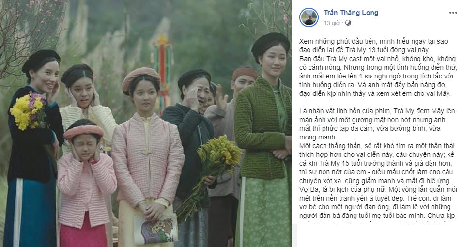 Trần Thăng Long - trưởng ban giải trí của một tờ báo có tiếng cũng lên tiếng khẳng định ”Cho Trà My 13 tuổi đóng vai vợ Ba là một quyết định đúng đắn”