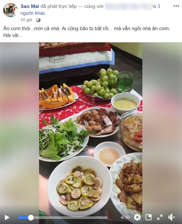 Nói là làm, chị Thu Sao ngay sau đó đã có 1 clip livestream bữa cơm của cả 2 vợ chồng với những món ăn ngon, thịnh soạn như chứng minh cho sự bình yên của 2 vợ chồng chị.