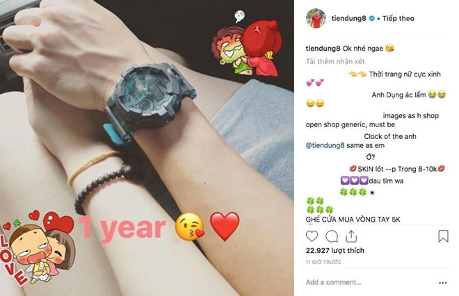 Cụ thể mới đây, anh chàng đã công khai trên trang Instagram cá nhân bức ảnh nắm tay 1 cô gái kèm dòng chữ đầy ẩn ý “1 year” (1 năm). Không khó để đoán được đây là tấm ảnh nhân ngày kỉ niệm 1 năm yêu đương hẹn hò của Tiến Dụng với cô gái “bí ẩn”.