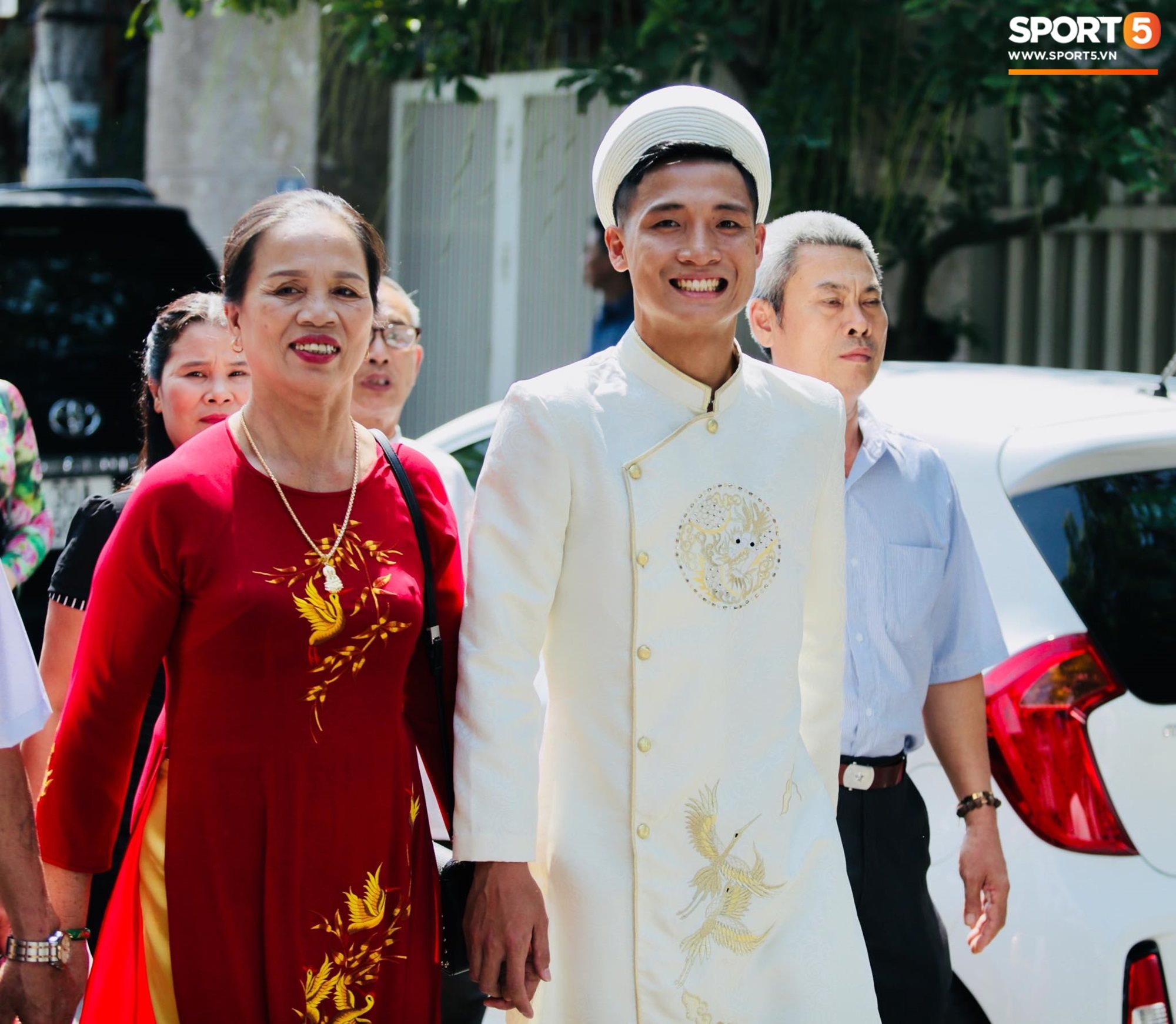 Lễ ăn hỏi có sự tham gia của nhiều đồng đội như Quế Ngọc Hải, Trọng Hoàng, Vũ Minh Tuấn, cựu cầu thủ Ngọc Anh và danh thủ Đặng Phương Nam.