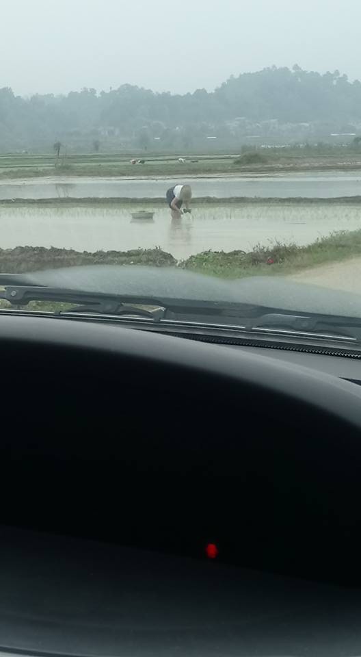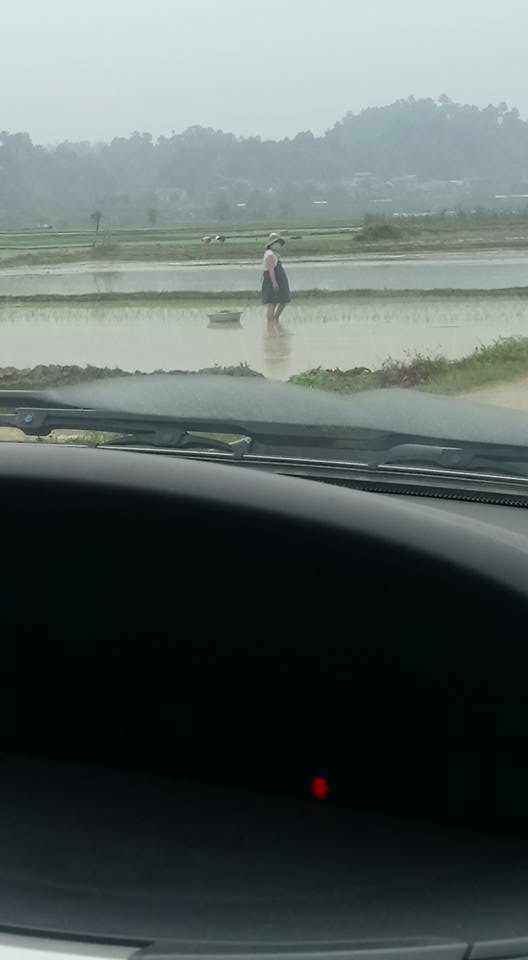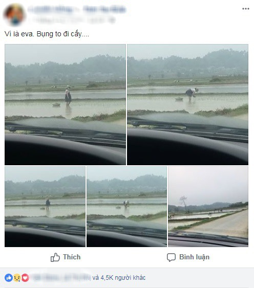 Hình ảnh bà bầu đi cấy khiến nhiều người thương cảm.