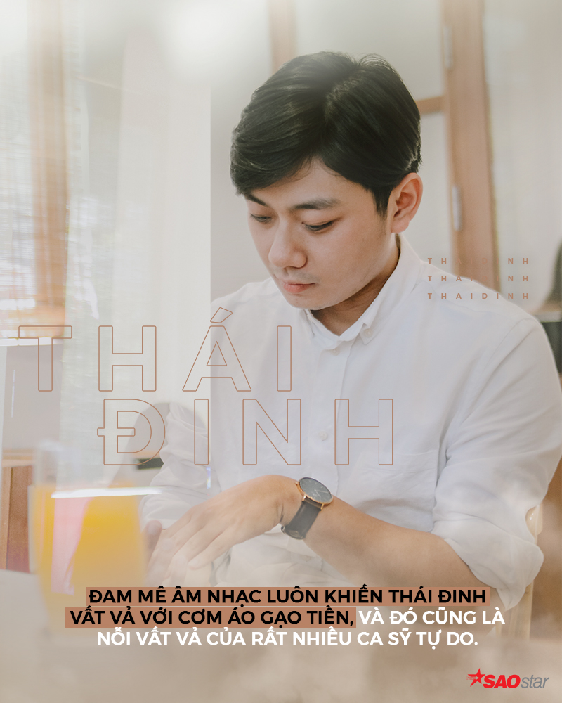 Đầu năm nay, Thái Đinh đã quyết định sẽ đi theo đam mê âm nhạc một cách tập trung và độc lập. Giờ đây, khi âm nhạc trở thành nghề nghiệp chính và mình phải sống nhờ vào nó thì vấn đề cơm áo gạo tiền là một vấn đề mình suy nghĩ rất nhiều. Đôi khi mình lo lắng rằng bây giờ đang có sự cộng hưởng của Indie, những bài hát của mình đang được khán giả đón nhận. Nhưng nếu mình không có sự đầu tư nghiêm túc, cố gắng thì cái tên của mình sẽ trôi về đâu? Với những ca sĩ tự do như mình vất vả, khó khăn trong vấn đề kinh tế hay chỗ đứng trong âm nhạc là rất nhiều, tuy nhiên mình tin mọi sự cố gắng sẽ được đền đáp xứng đáng.