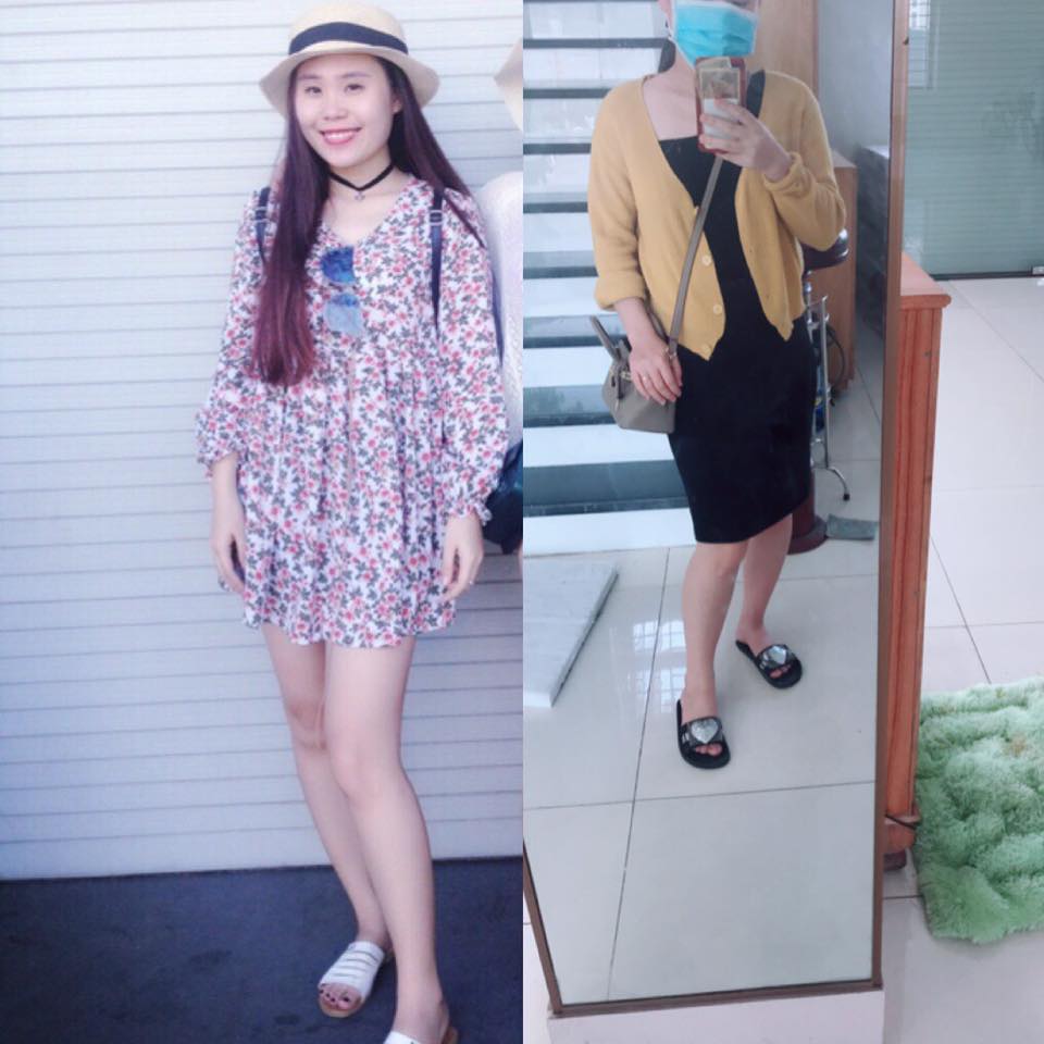 Bức ảnh sự khác biệt khi còn con gái và khi mang bầu 6 tháng mà mẹ bỉm sữa M.X chia sẻ.